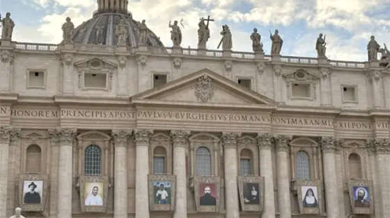 Hình ảnh của các vị tân hiển thánh được treo tại Vương cung thánh đường Thánh Phêrô để mọi người có thể chiêm ngưỡng.