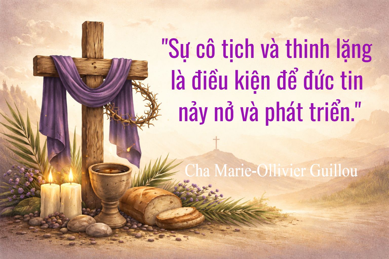 “Khởi đầu cho sự hoán cải Kitô giáo hay tôn giáo chính là bộ ba thiêng liêng: sự cô tịch, thinh lặng và chiêm niệm,” Cha Marie-Ollivier Guillou nhận xét. “Đây là những yếu tố thiết yếu của đời sống nội tâm,” ngài khẳng định, đồng thời nhấn mạnh rằng “sự cô tịch và thinh lặng không có mục đích riêng”: “Chúng đạt đến đỉnh cao trong sự chiêm niệm. Và chúng ta chiêm niệm điều gì? Sự hiện diện của Thiên Chúa. Bởi vì sự cô tịch và thinh lặng là điều kiện để đức tin nảy nở và phát triển.”