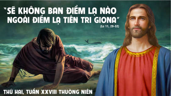 Khi ấy, thấy dân chúng từng đoàn lũ tụ tập lại, Chúa Giêsu phán rằng: “Dòng giống này là dòng giống gian ác. Chúng đòi điềm lạ, nhưng sẽ không ban cho chúng điềm lạ nào, ngoài điềm lạ của tiên tri Giona. Vì Giona đã nên điềm lạ cho dân thành Ninivê thế nào, thì Con Người cũng sẽ là điềm lạ cho dòng giống này như vậy. Ðến ngày phán xét, nữ hoàng phương nam sẽ đứng lên tố cáo và lên án dòng giống này, vì bà đã từ tận cùng trái đất mà đến nghe sự khôn ngoan của Salomon. Nhưng ở đây còn có người hơn Salomon. Dân thành Ninivê cũng sẽ đứng lên tố cáo và lên án dòng giống này, vì họ đã sám hối theo lời Giona giảng, nhưng ở đây còn có người hơn Giona nữa”.