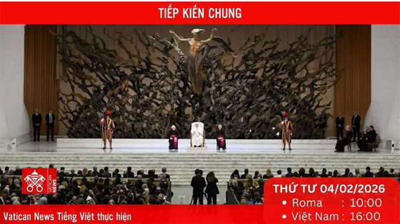 Vatican News Tiếng Việt truyền hình Buổi tiếp kiến chung hằng tuần của Đức Giáo hoàng Lêô XIV tại Hội trường Phaolô VI vào lúc 16g00 Viêt Nam.