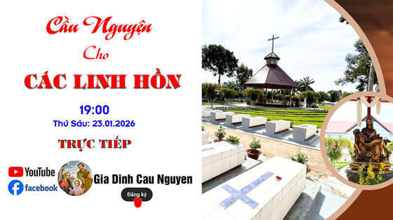 Buổi cầu nguyện “CẦU CHO CÁC LINH HỒN” được hiệp dâng vào tối thứ Sáu lúc 19giờ30′ thứ Sáu ngày 23.01.2026. Tại Giáo xứ Thánh Tống Viết Bường, GB9 Nguyễn Giản Thanh , Cư xá Bắc Hải, phường 15, Quận 10. Được trực tiếp để phục vụ cho những bệnh nhân trên giường bệnh, các cụ lớn tuổi, khuyết tật, đau yếu.