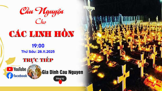 Buổi cầu nguyện “CẦU CHO CÁC LINH HỒN” được hiệp dâng vào tối thứ Sáu lúc 19giờ30′ thứ Sáu ngày 28.11.2025. Tại Giáo xứ Thánh Tống Viết Bường, GB9 Nguyễn Giản Thanh hoặc J10 Hương Giang, Cư xá Bắc Hải, phường 15, Quận 10. Được trực tiếp để phục vụ cho những bệnh nhân trên giường bệnh, các cụ lớn tuổi, khuyết tật, đau yếu.