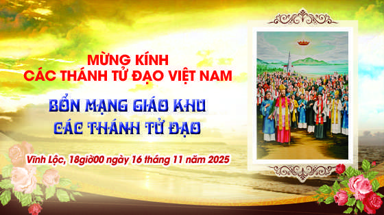 Thánh lễ “BỔN MẠNG GIÁO KHU CÁC THÁNH TỬ ĐẠO VIỆT NAM, GIÁO HỌ VĨNH LỘC”. Lúc 18giờ00 ngày 16.11.2025. tại Giáo họ Vĩnh Lộc. Được trực tiếp để phục vụ: Bệnh nhân, những người đau yếu, tản tật không thể đến nhà thờ được! Kính mời quý anh chị cùng hiệp thông cầu nguyện.